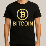 Show your crypto pride with this sleek black t-shirt featuring the iconic Bitcoin logo in a stunning metallic gold finish. Crafted from premium cotton for comfort and durability, this shirt is perfect for everyday wear...